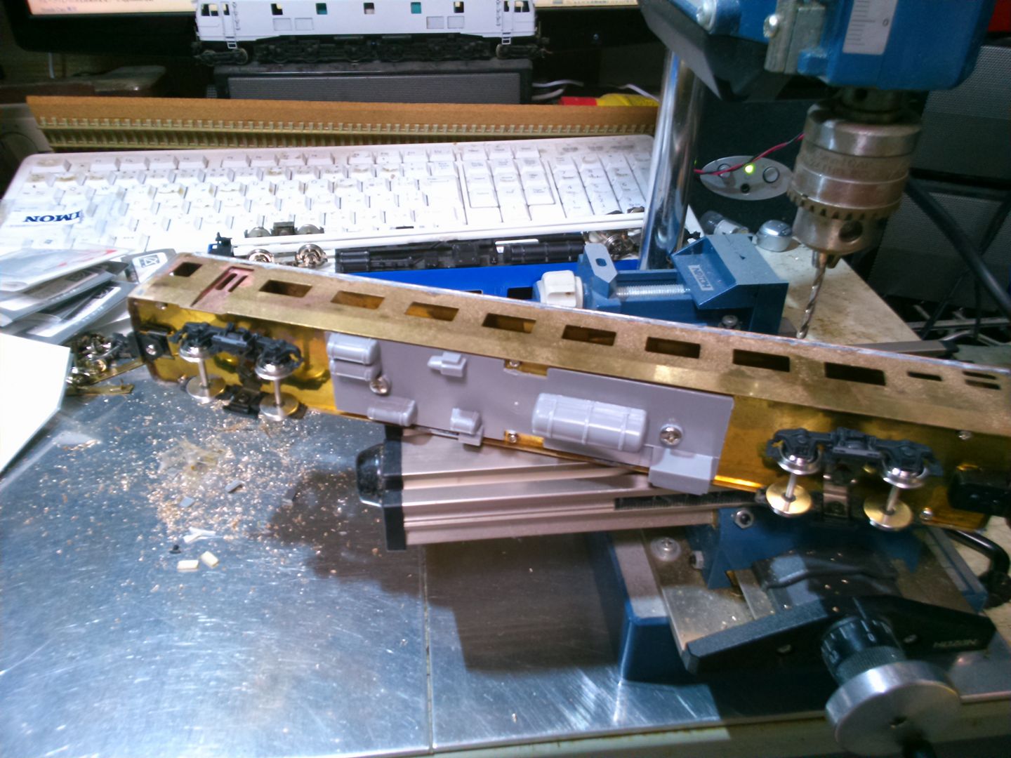 各車の床板には3mmの穴あけをして床下機器を取り付け