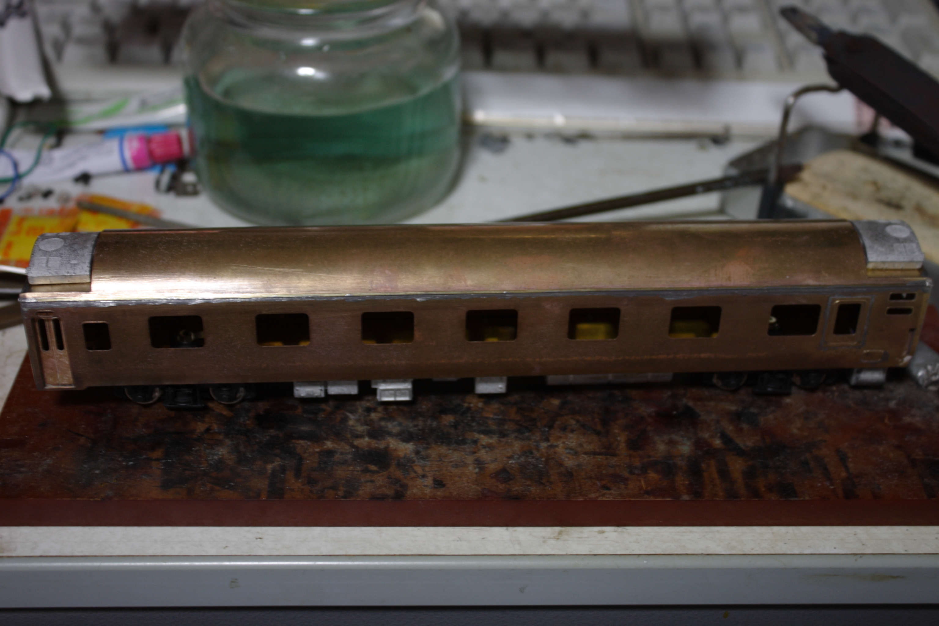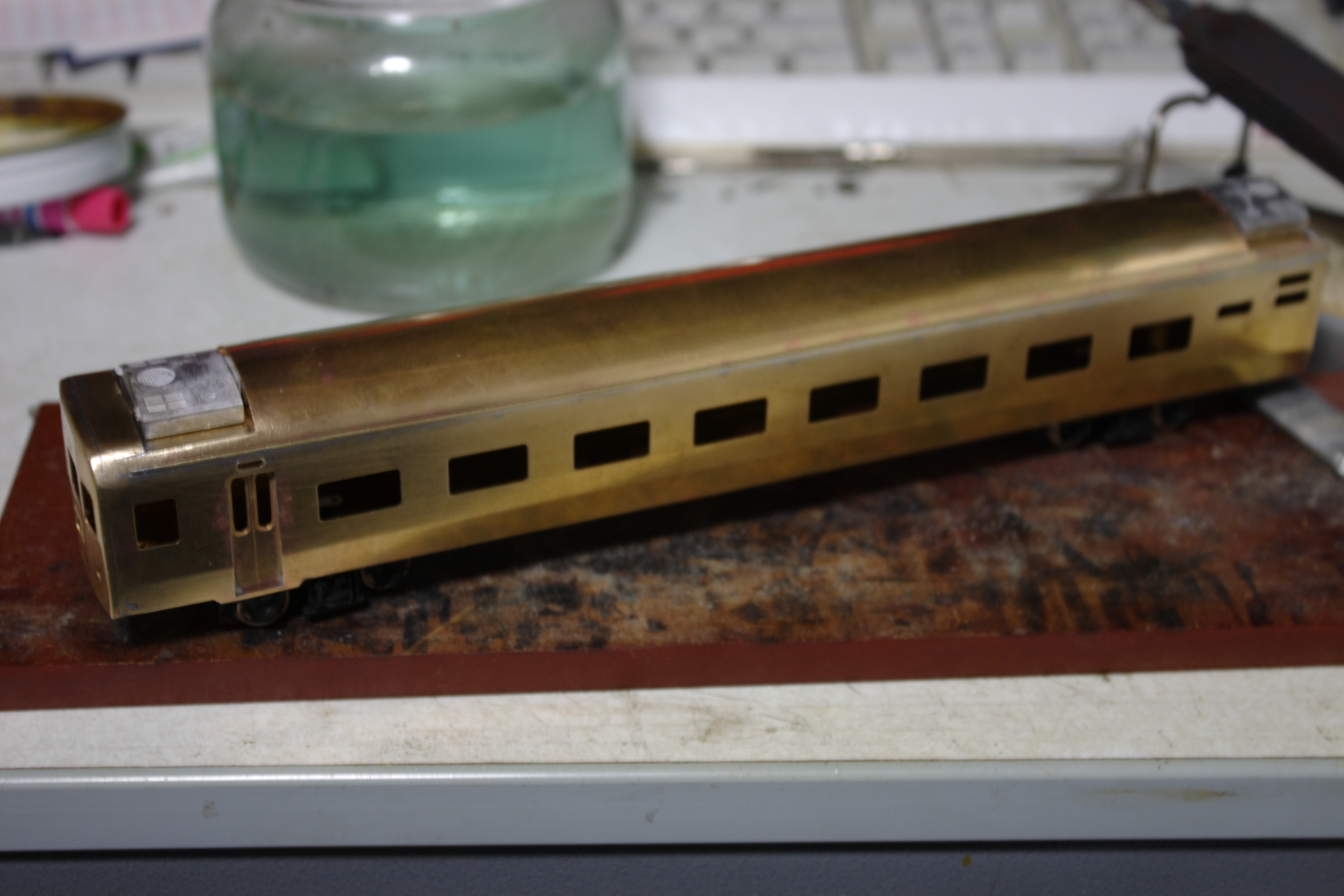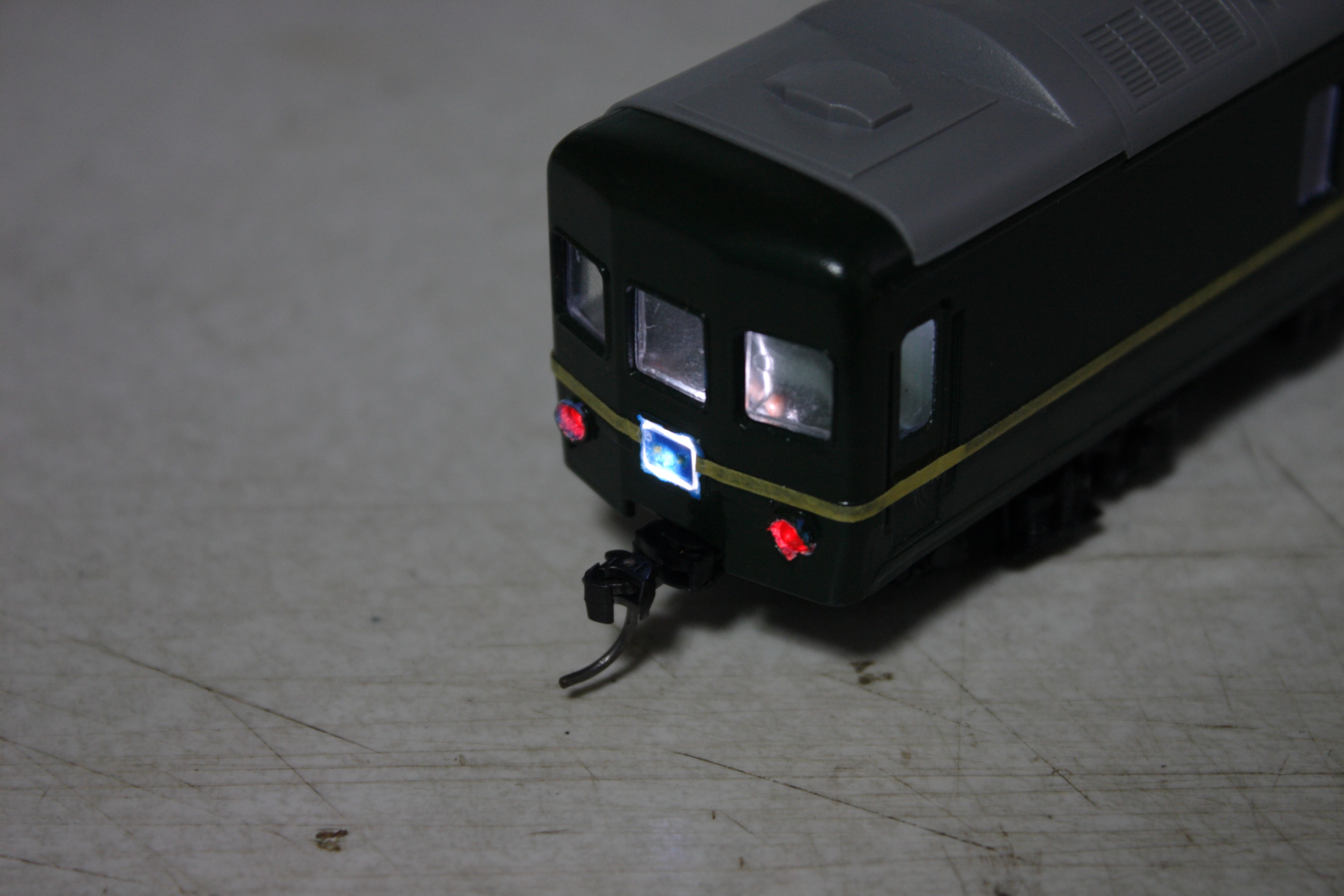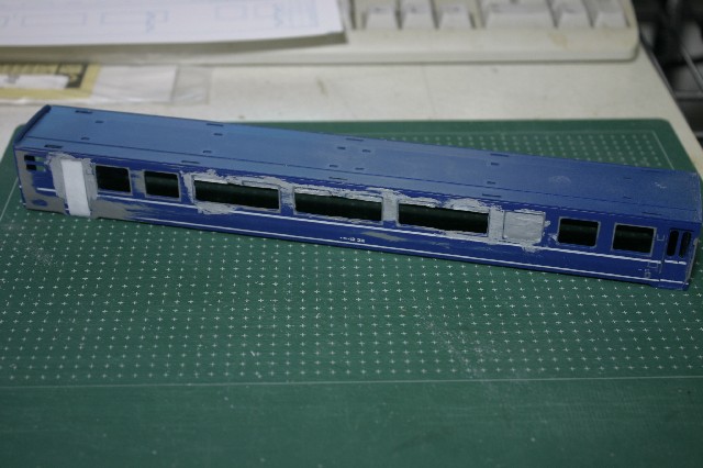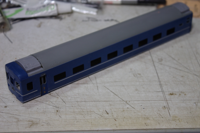 車体を普通に組み立てトワイライト用車にすべく緑で塗装します