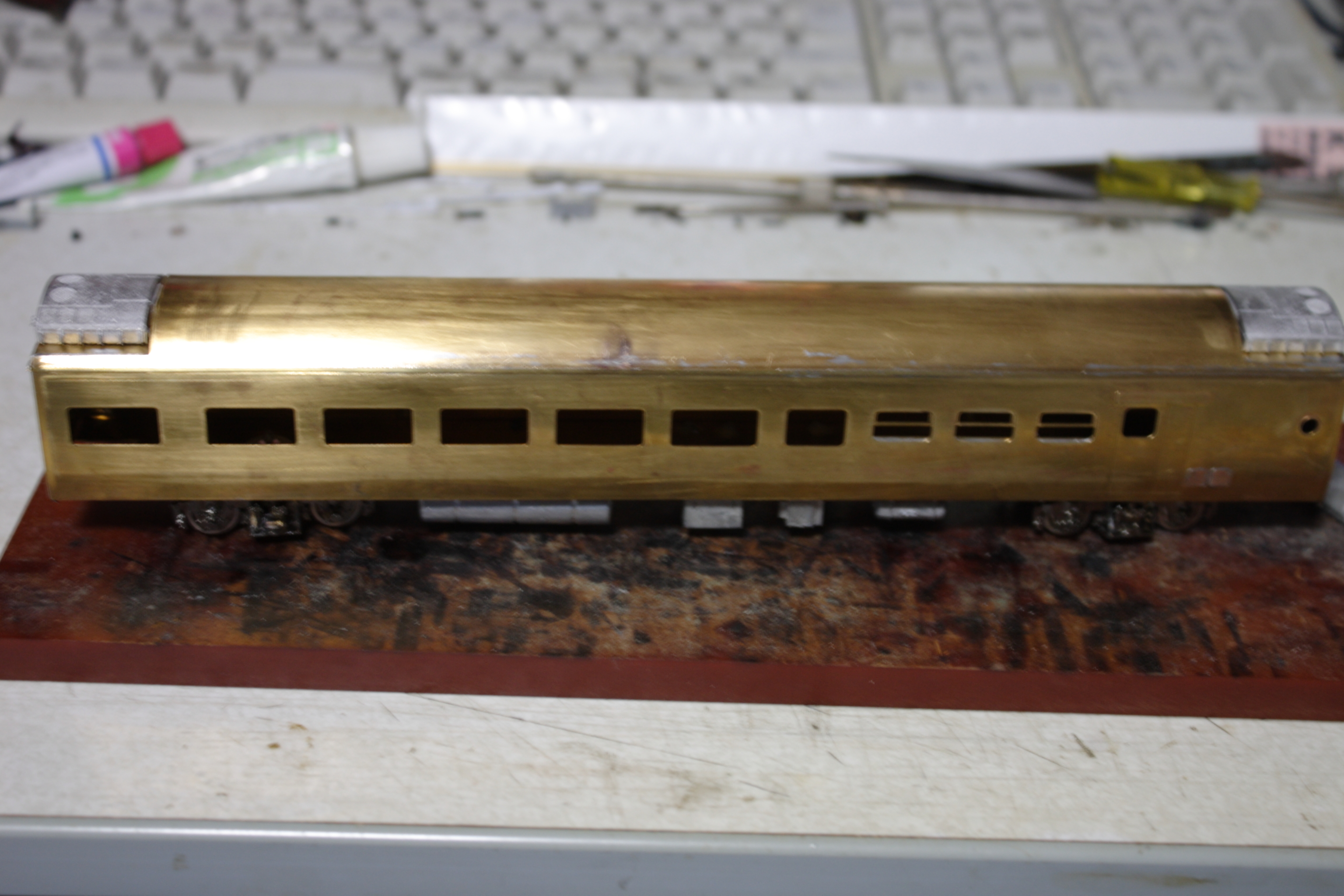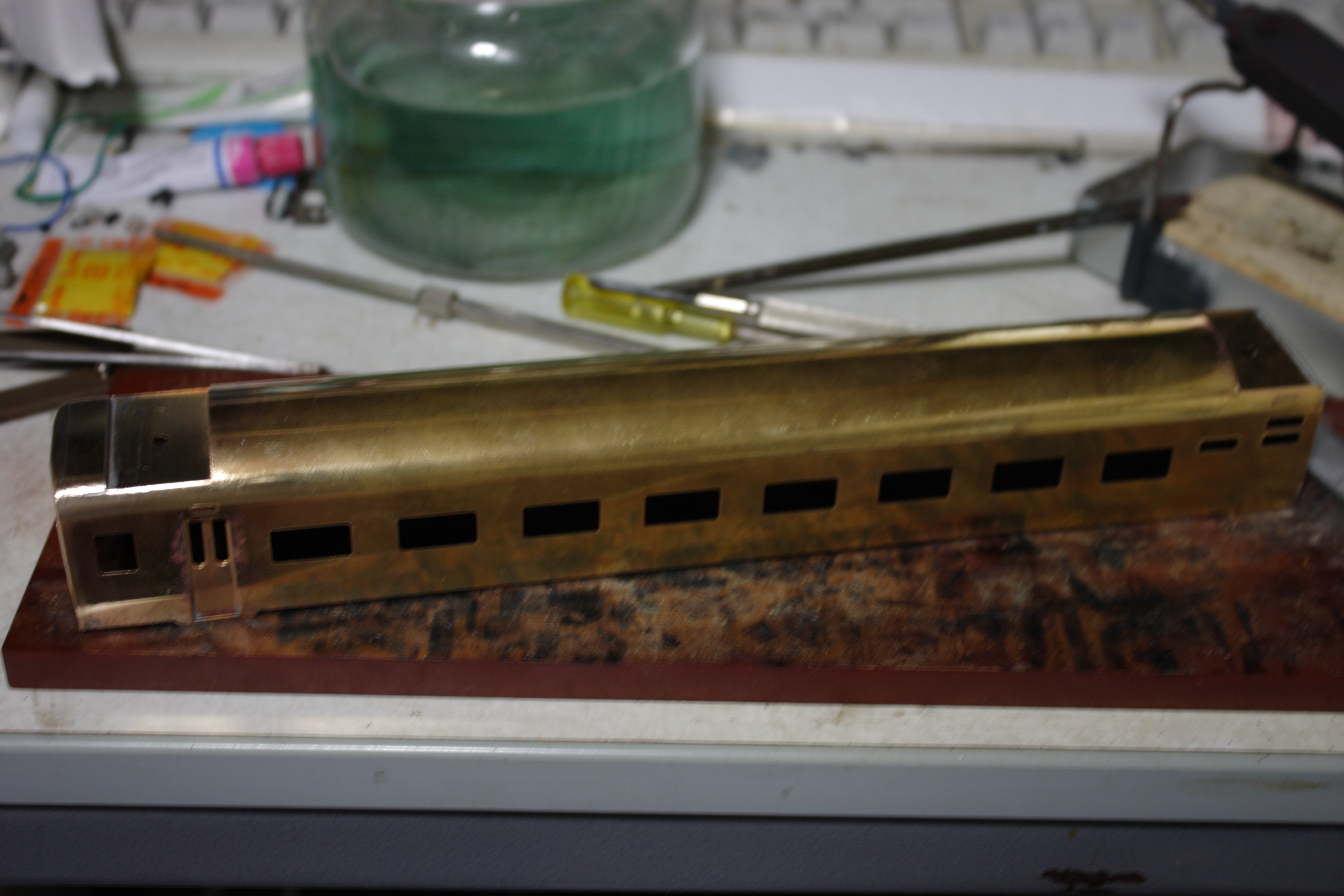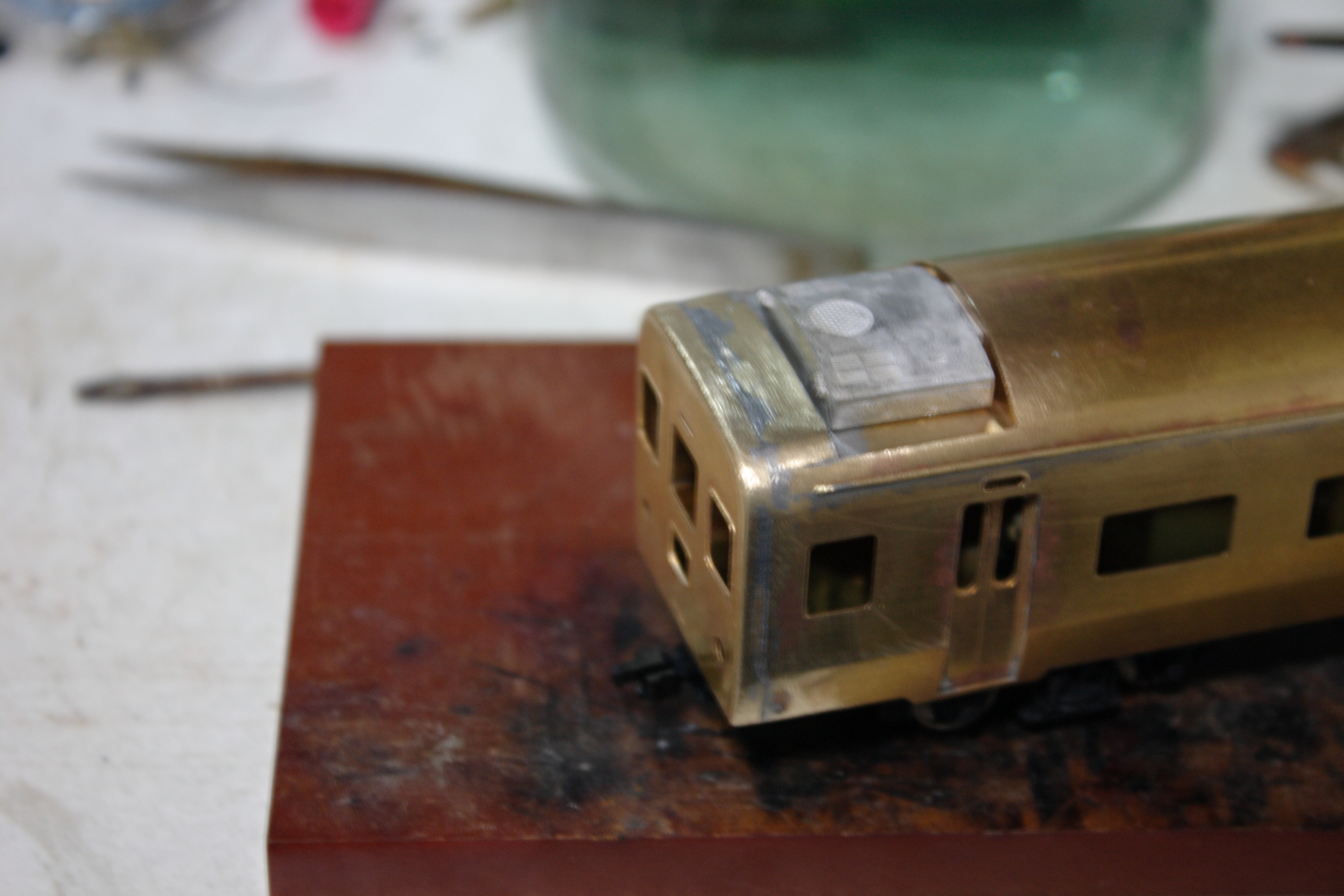 車体を普通に組み立てトワイライト用車にすべく緑で塗装します