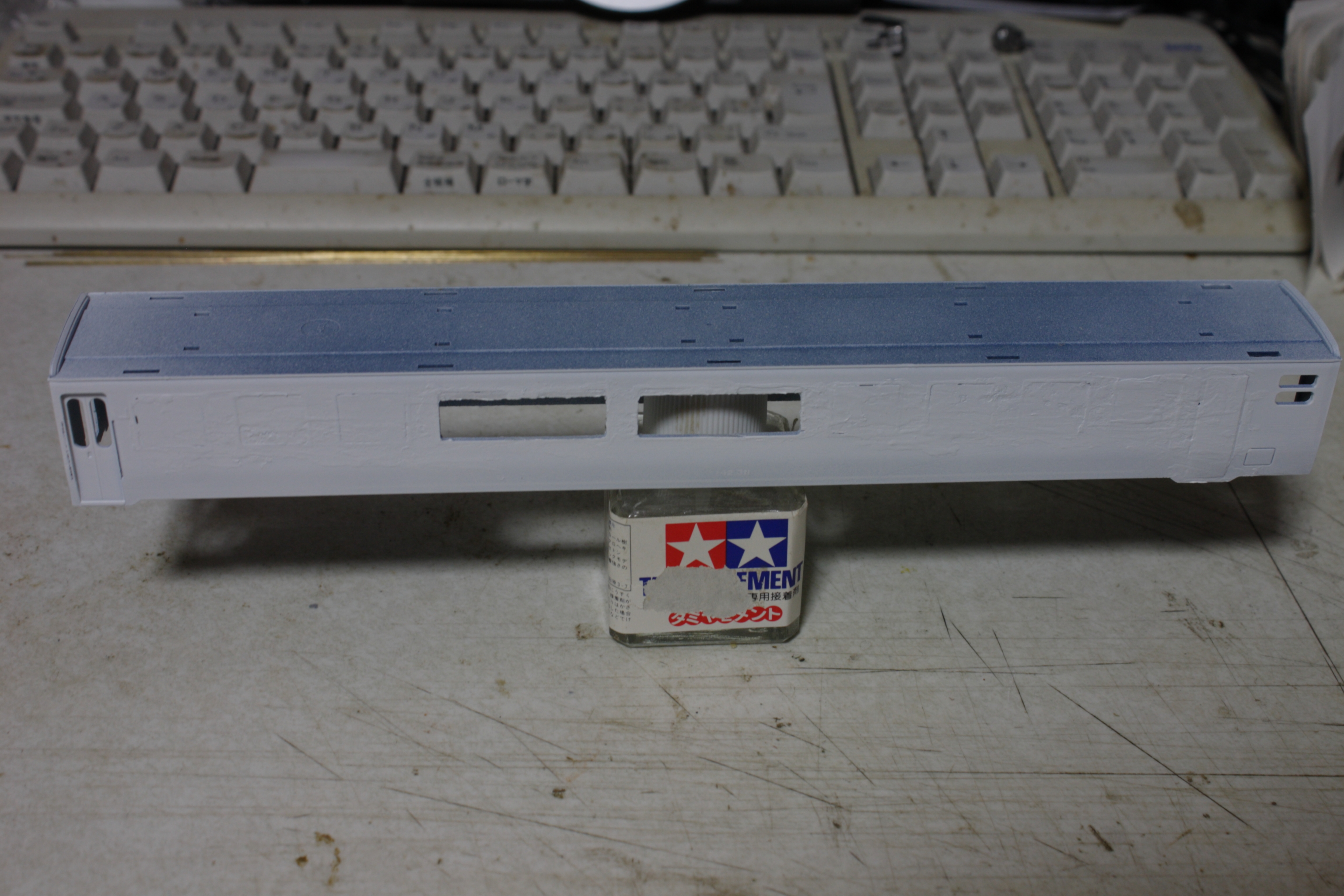 パテで修正し下地としてベースホワイトを塗ります